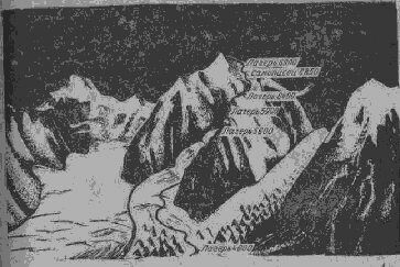 ледником Сагран с запада, расшифрован группой Крыленко. Точно фиксировано