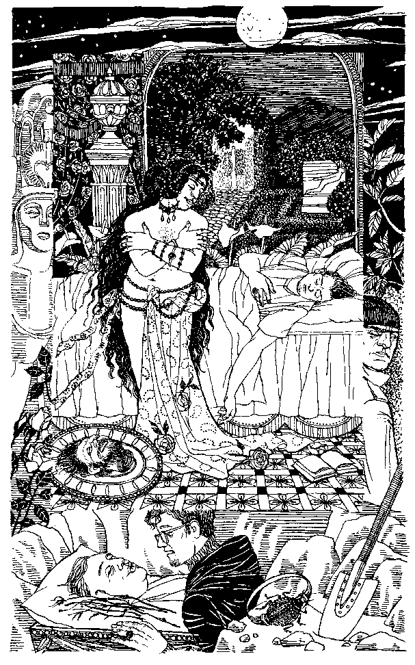 и угрюмыми шпилями разливался мертвый свет фонарей, где-то наверху поухивала