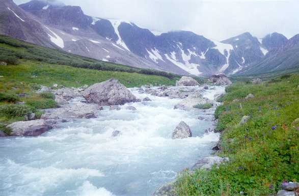 горы, тем больше осадков. На пешем участке - постоянные броды через речки,