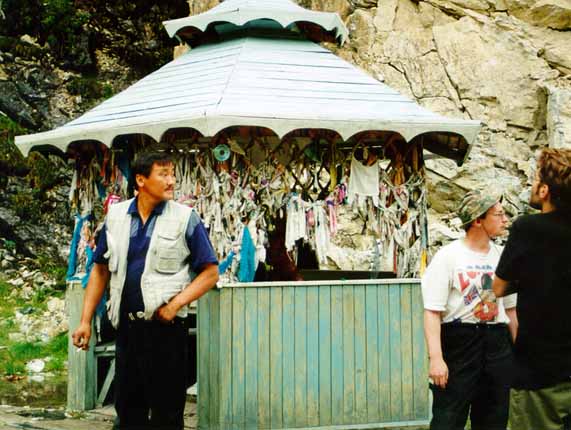 Когда машина остановилась у очередного бурхана, нам было объявлено, что этот бурхан самый главный на пути к Хойто-Голу, брызнуть надо обязательно, дальше архе везти нельзя.