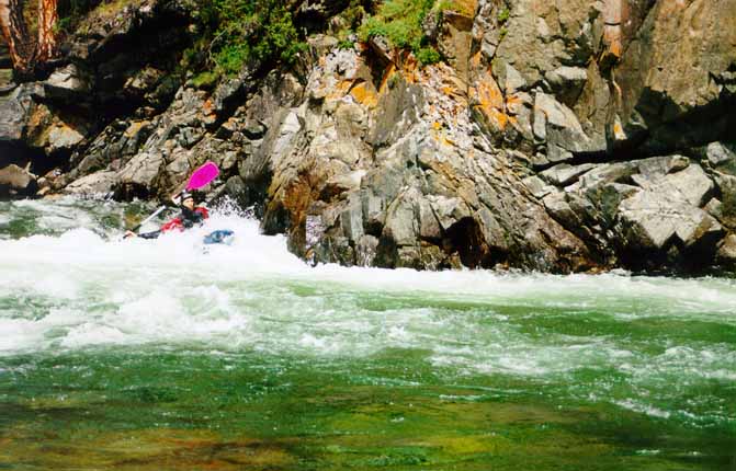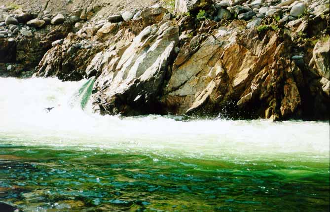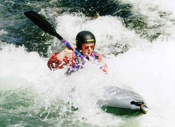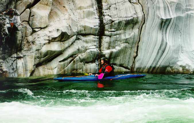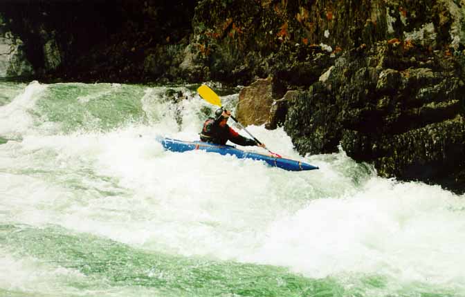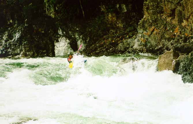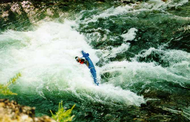 Со Стасом вышло веселее. Выходя на струю, Стас кильнулся. Так как Стас принципиально не хочет вставать рычагом в реальных условиях (а винтом не умеет), он отстрелился. Мы стали волноваться, как бы его не затащило в прижим, и тут Стас стал вытворять такое...