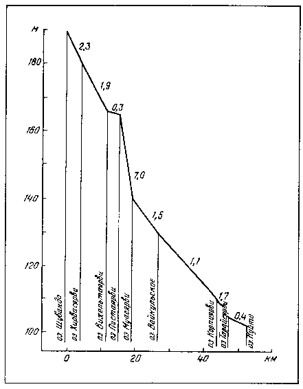 Продольный профиль межозерных участков реки Писта