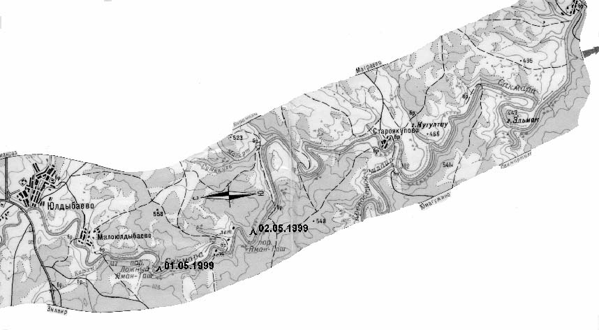 описание прохождение группой маршрута". Кроме этого, ниже деревни Мал. Чураево при несколько большем уровне воды, нежели при совершении данного похода, река идет через лес и в некоторых местах может быть сложно остаться в главном русле.