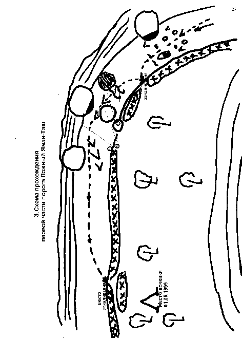 3. Схема прохождения первой части порога Ложный Яман-Таш