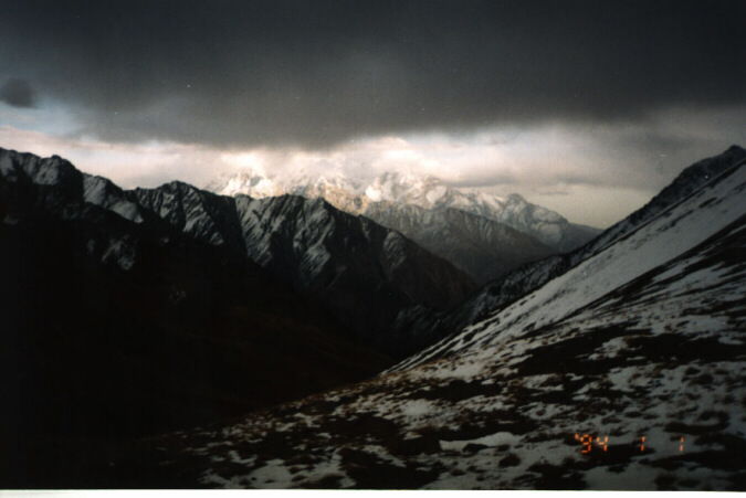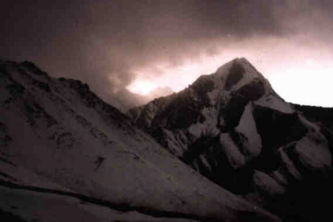 Чон-Ашу (3890). Он встретил нас морозцем и приветливым снегом в