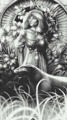 Флоримель(Флора, Эвелин Флаумель)Золотые волосы, синие глаза. Цвета одежды: зеленый и серый. Имеет несколько ирландских волкодавов, с кличками Дондер, Блитцен , и т.д. Символ - цветок лотуса на фоне частично зашедшего Солнца . Интересов у нее немного, в основном это власть, здоровье, интриги и мужчины. Она склонна к наглости и щегольству, любительница зрелищ, верующая в утверждение: "Умеренность суть ничто". Больше всего ее устрашает возможность оказаться не на той стороне. По этой причине она быстро и легко меняет объект своего служения, ни к кому вообще не ощущая истинной верности. В отличие от Фионы, она абсолютно не сведуща в генеалогии мужчин Янтарного дома, потому, что не хочет ответственности за власть. |